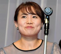福原さんは紺のジャケット姿で登壇。長い髪を後ろで結び、眉はまっすぐ。二重の目ががパッチリしていた。