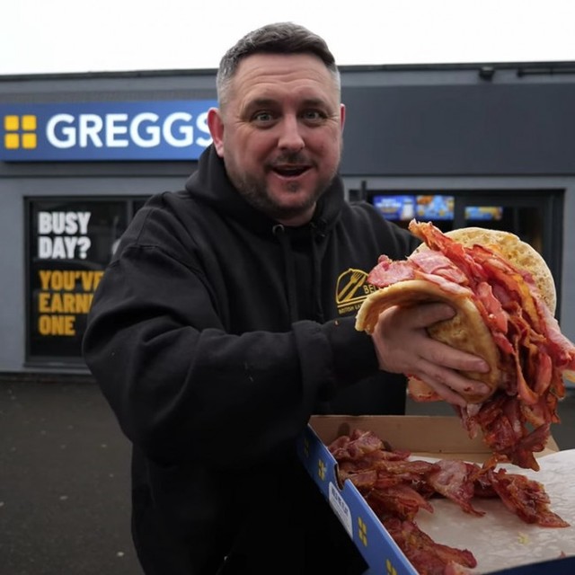 エベレスト盛り!巨大ベーコンバーガー挑戦が話題 27歳英国人が健闘も「世界中の大食漢でもあれは大変」