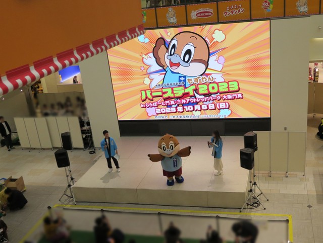 担当者:グリーティングなどではやはりミャクミャクにお客様が集まりますが、誰よりも前に出て軽快に自らお客様へアピールしに行く様子が健気で応援したくなると評判です。XなどSNSでもミャクミャクの話題が多いですが、広報担当副知事として、もずやんも毎日府政情報の発信に取り組んでいるんですよ!